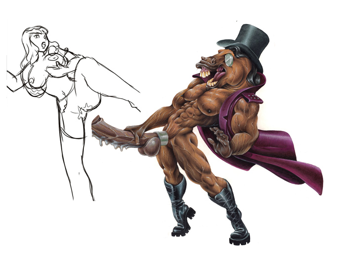 The position/angle of her body and legs the way we picture it is actually somewhat similar to furry girl we found on deviantart by Eiris, but flipped vertically ( see attached). Her arms perhaps could be more 'flailing' (maybe one grabbing her boob and the other reaching out into the air). The thing to keep in mind is she IS being fucked (we will add that ourselves later) so that force/action should be a factor in mind when drafting, her face should be a little worried/shocked. Attached is also a photo of the draft of the horse warrior who will be doing the fucking, we are including this so you can better understand the vantage point/angle of her body. She is being fucked slightly upwards. Also attached is a collage only to get a sense of the positions and roughly how we see the final image being outlined.