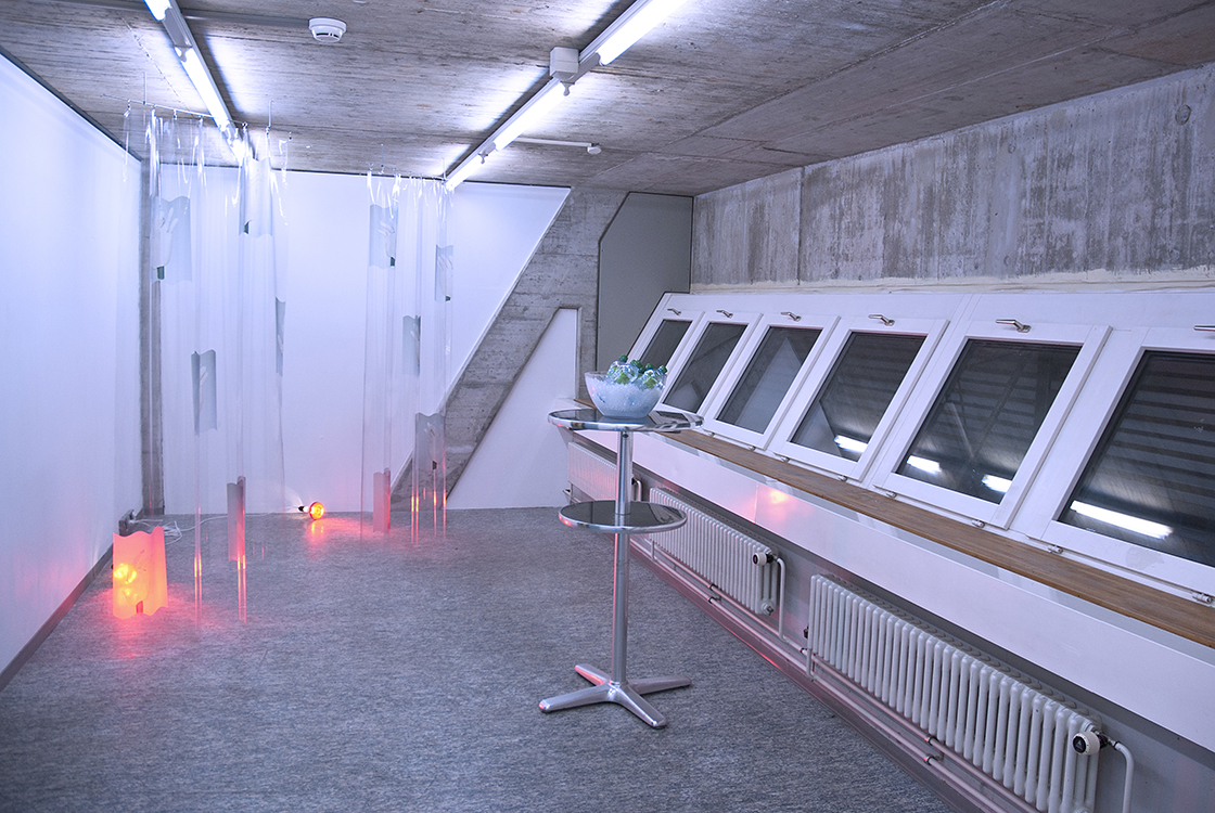 Skinsmooth edition of two (left and right hand) inkjet print on transparent pvc, infrared heating lamps 130 x 208 cm 2012